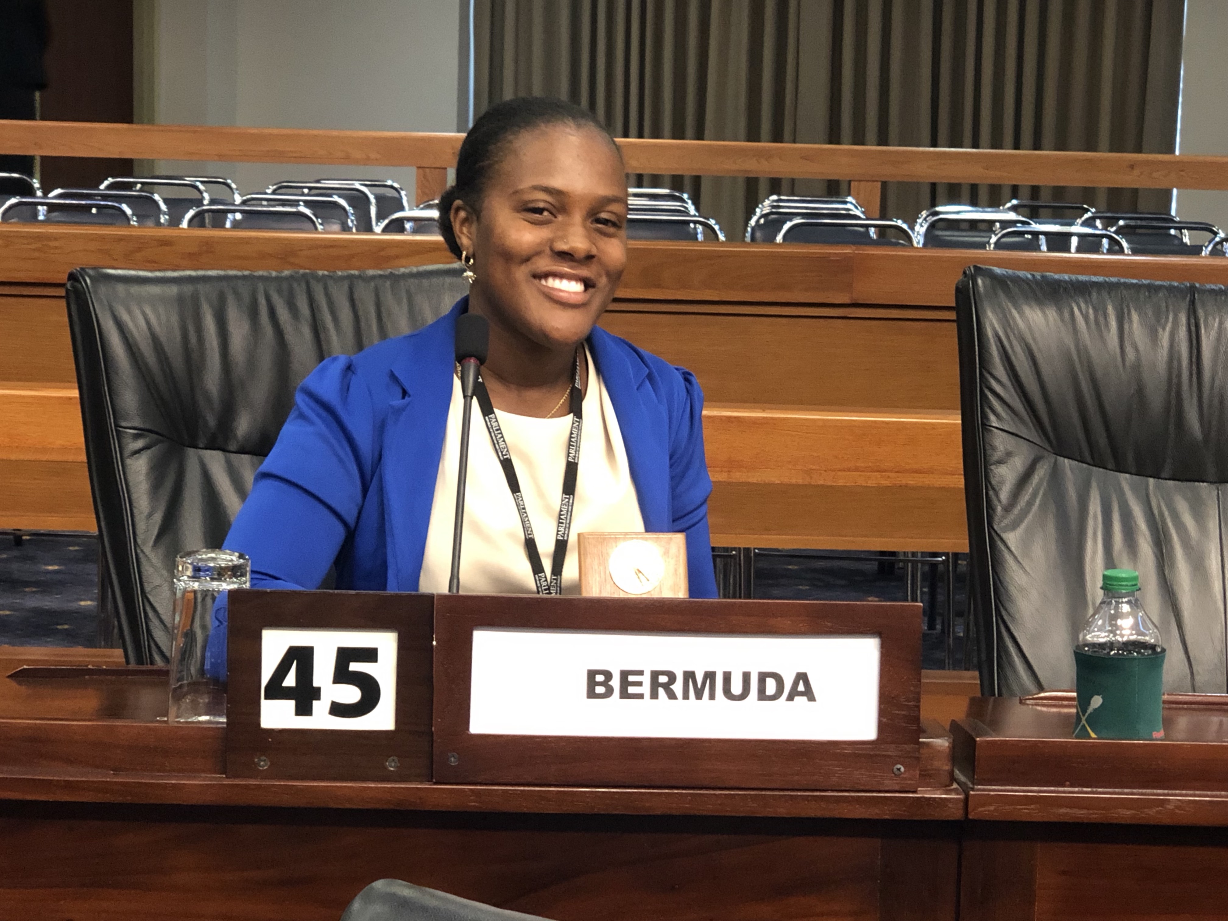 Bermuda’s Youth Parliamentarian Halle Teart was awarded top honours as ‘Most Outstanding Debater’ in the 15th Annual Regional Youth Parliament debate held in the Parliament of Trinidad and Tobago on 17 July, 2019.
