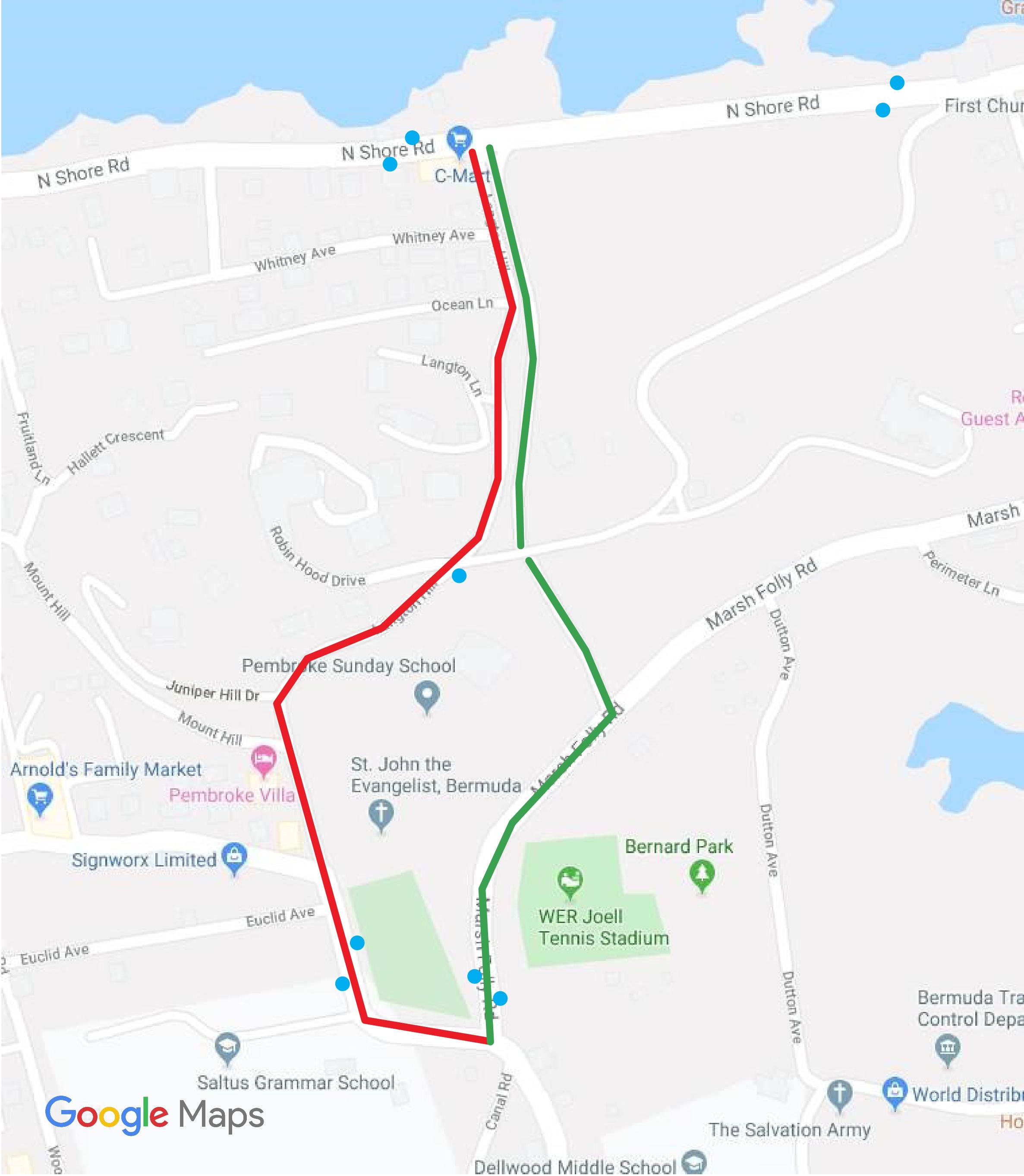 The Department of Public Transportation advises the public, that effective 2 December 2019, Bus Route 4 via North Shore Road will no longer travel over Langton Hill, Pembroke.