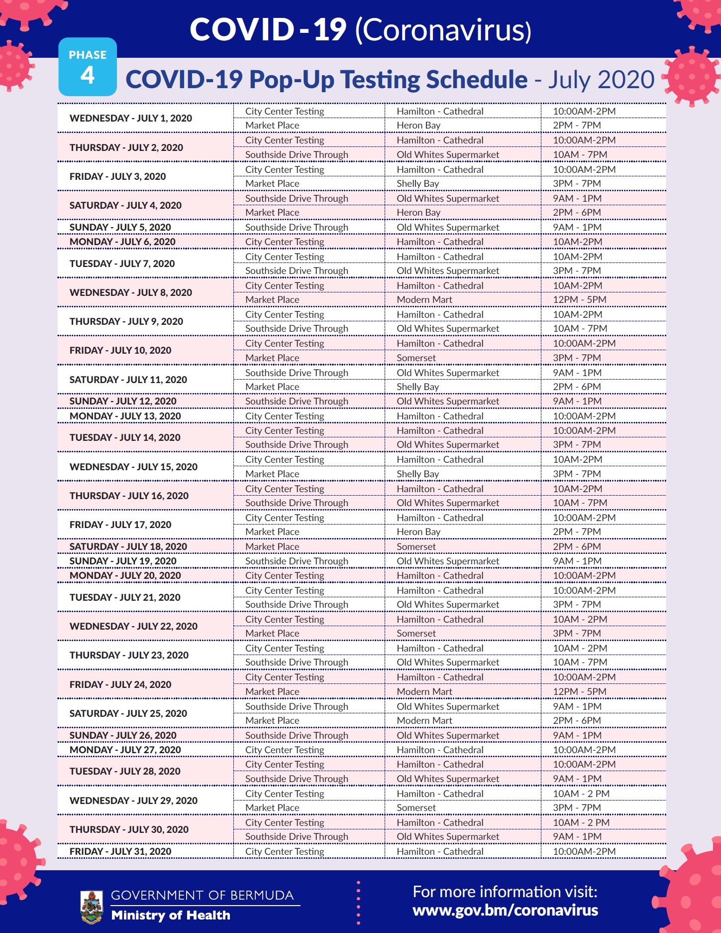 The Ministry of Health reminds the public and recent incoming travellers of the testing locations available this week: