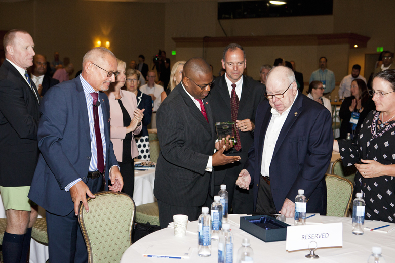 Deputy Premier and Minister of Transport and Regulatory Affairs, The Hon. Walter H. Roban JP MP opened the Bermuda Captive Conference today at the Fairmont Southampton Resort. He participated in an honours ceremony that recognized eleven corporations who have held a captive insurance company in Bermuda for more than a quarter of a century. They join an additional 200 such companies who had already been elevated to Bermuda’s Captive Hall of Fame. The Deputy Premier also presented Bermuda captive industry pioneer Brian Hall with the Fred Reiss Lifetime Achievement Award. Mr. Hall was a prime mover in establishing Bermuda as the global leader in captive insurance. See remarks below from the Deputy Premier in opening the event.