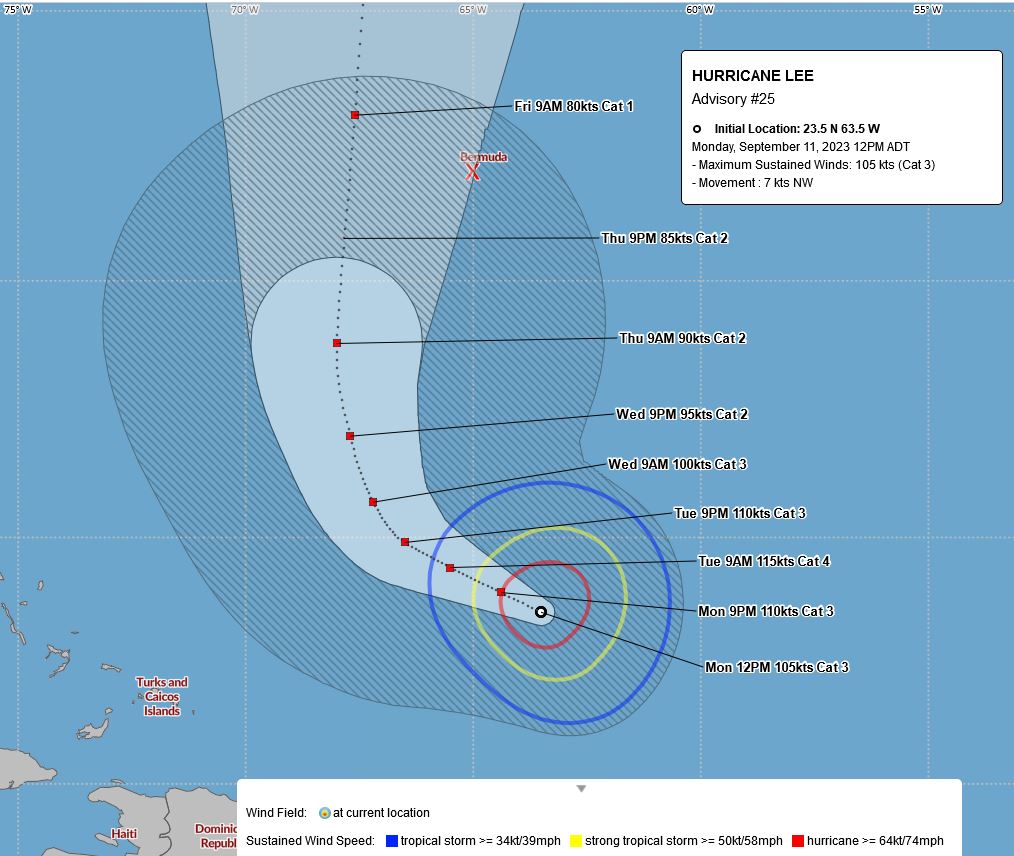 BWS - Tropical Update Bulletin, HURRICANE LEE, Advisory #25,12 pm Mon, Sep 11, 2023