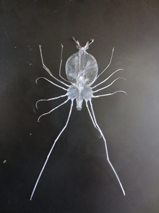 Photograph of a lobster phyllosoma (larva) found by a local fisherman in Bermuda waters (photo by JM Pitt)