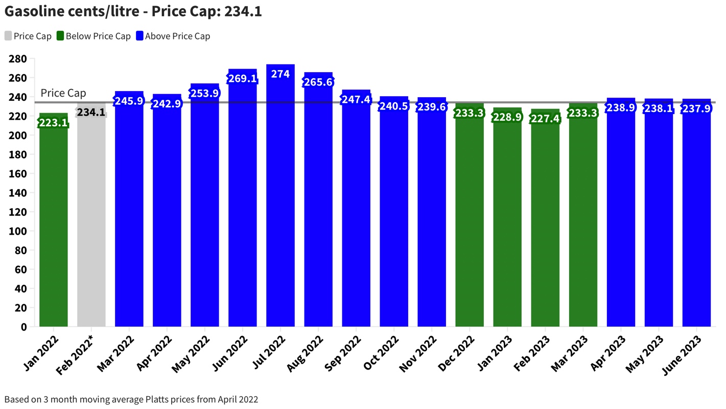 “Our motorists continue to benefit from the support provided by the price cap put into place in February 2022. This assistance is consistent with this Government’s commitment to providing relief to help residents and businesses during this period of high global inflation.