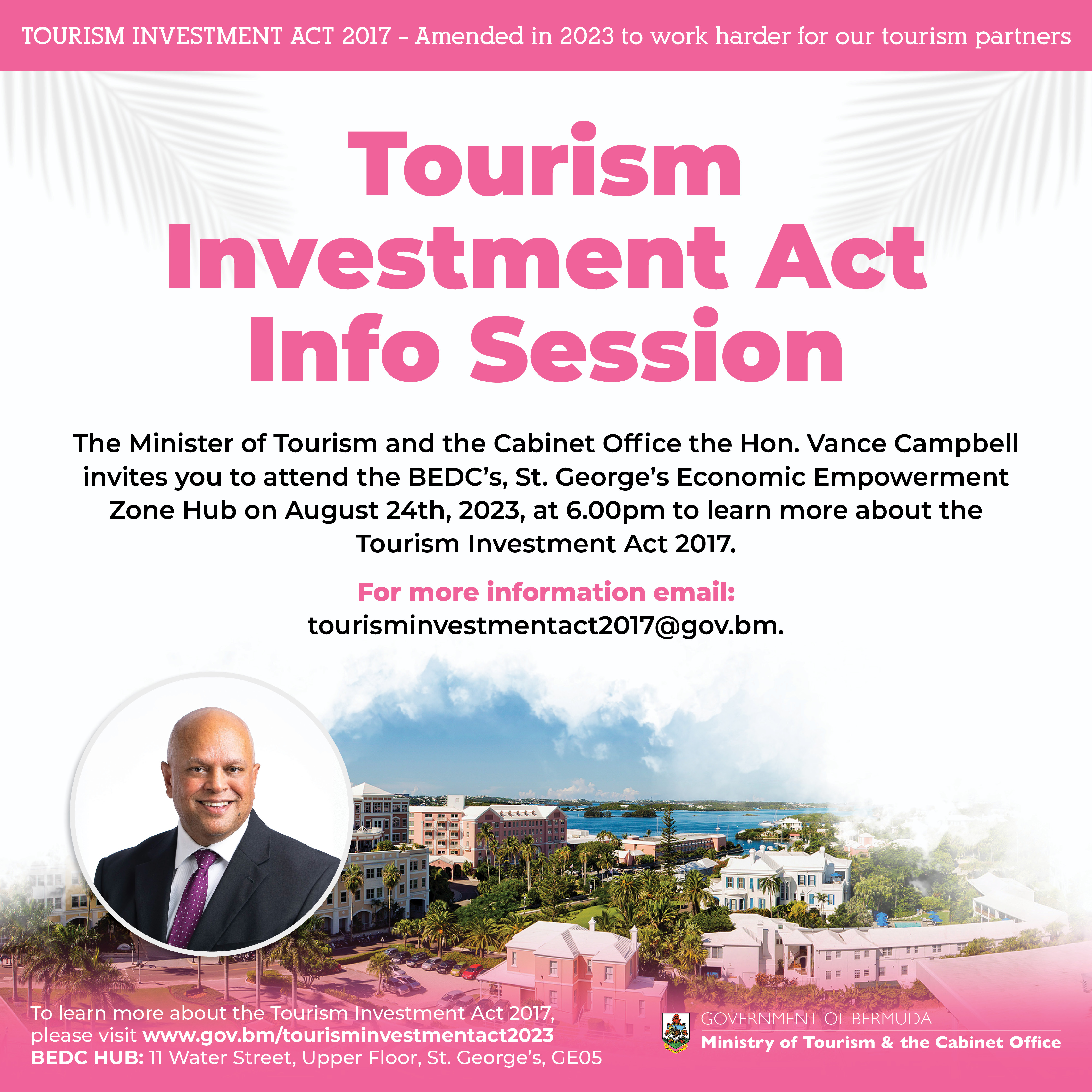 Interested businesses, particularly small and medium sized businesses (this includes restaurants and visitor attractions) should email: tourisminvestmentact2017@gov.bm or go to www.gov.bm/tourisminvestmentact2023 to learn more.