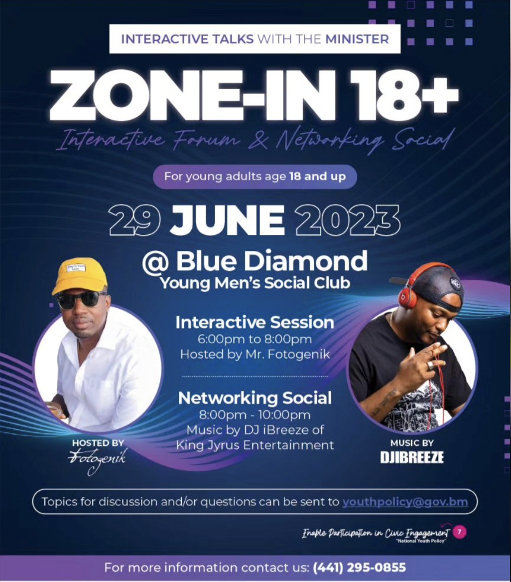 To learn find out more about Zone-In 18+ email youthpolicy@gov.bm. To learn more about the NYP, visit www.youthpolicy.bm