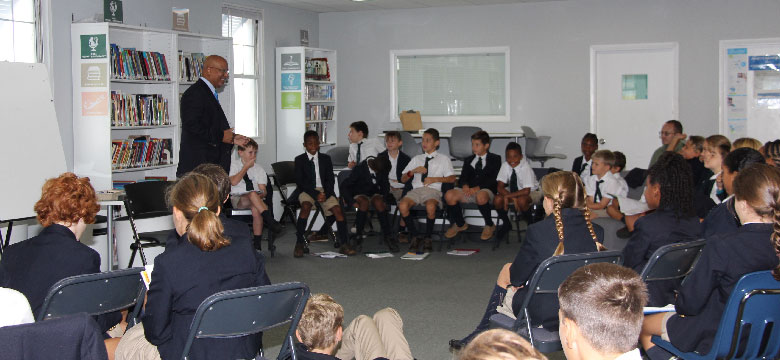 Yesterday (October 20th) the Deputy Premier and Minister of Finance, the Hon E. T. Richards, visited Somersfield Academy to do a presentation on the Airport Redevelopment Project to a group of P6 Innovations students. At the request of the school, Minister Richards discussed the project and answered questions from the students who are learning about the airport project through their Innovations Programme. Somersfield Academy’s “Innovations" is an inquiry based course of study including science, technology, and culture. This program encourages flexible thinking whilst engaging students with real-world issues. Prior to yesterday’s presentation, the students had visited the airport to view the new airport model.