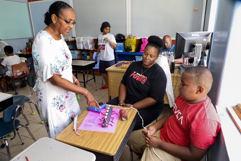 On this occasion, Minister Foggo stopped by Camp Paw Paw, which is operating out of West Pembroke Primary. The Minister took the opportunity to observe the arts and crafts being made by the campers and get an overview from the camp staff of the planned summer programme activities. Each year the programme has a theme to encourage the students’ learning and development. This year the theme is ‘Trash to Treasure’ which puts a special emphasis on recycling.