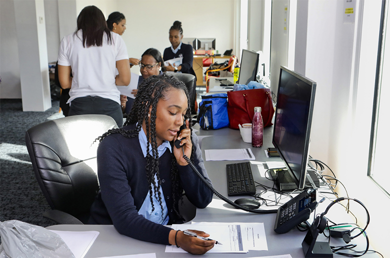 The Minister was accompanied by Project Manager Dean Parris who introduced her to the seven telephone operators who, between them, have fielded more than 100 calls since the call centre opened on Thursday morning.
