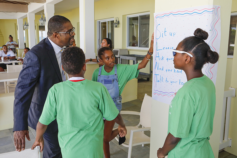 On Sunday afternoon the Minister of Social Development and Sports the Hon. Michael Weeks JP MP attended the closing ceremony for the Mirrors SuperCamp Junior Forum (photographs attached) at Willowbank Resort & Conference Centre.