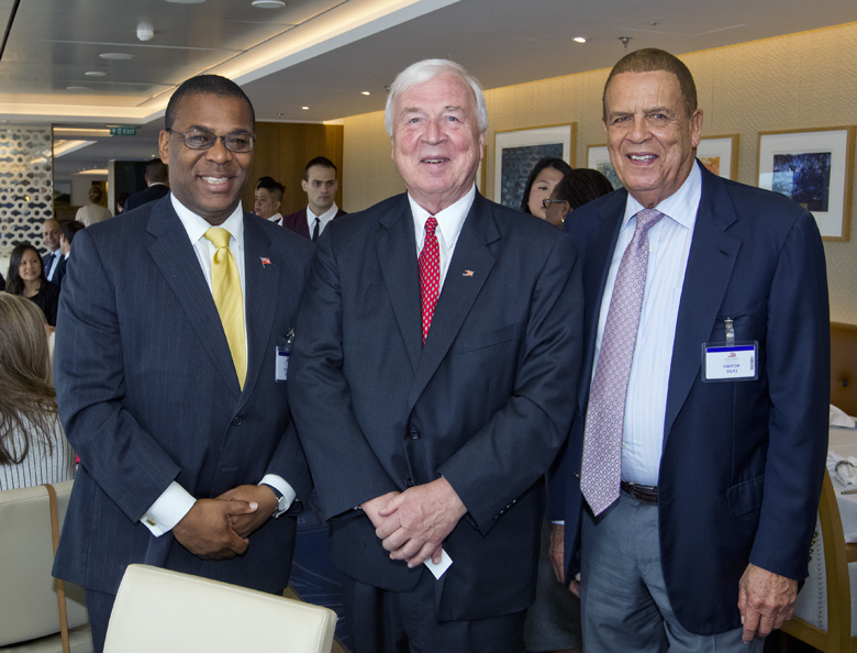 Deputy Premier and Minister of Transport and Regulatory Affairs, the Hon. Walter H. Roban led a large delegation aboard the MS Viking Sea this afternoon, at the invitation of the Founder, Chairman and Owner of Viking Cruises Torstein Hagen.