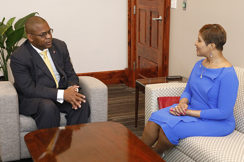 Jamaica’s Consul General to New York, Ms Trudy Deans made her first official visit to Bermuda and was welcomed by Acting Premier and Minister of Transport and Regulatory Affairs the Hon. Walter H. Roban JP MP during a courtesy call on the Cabinet Office.