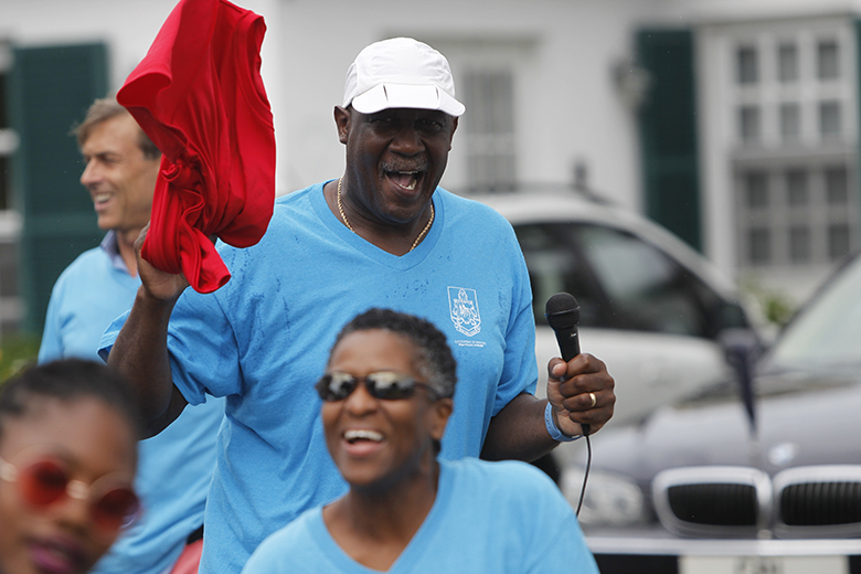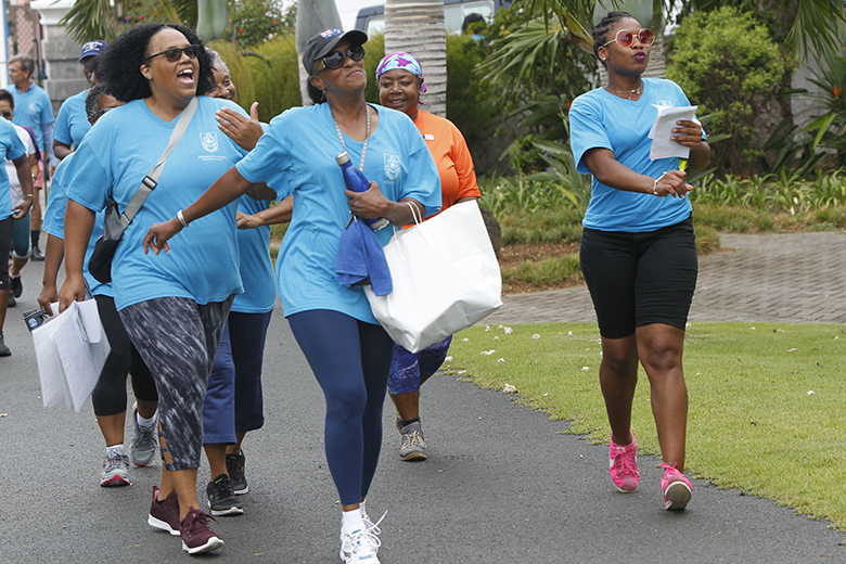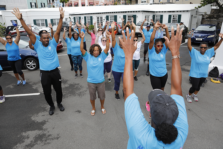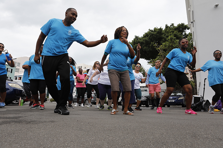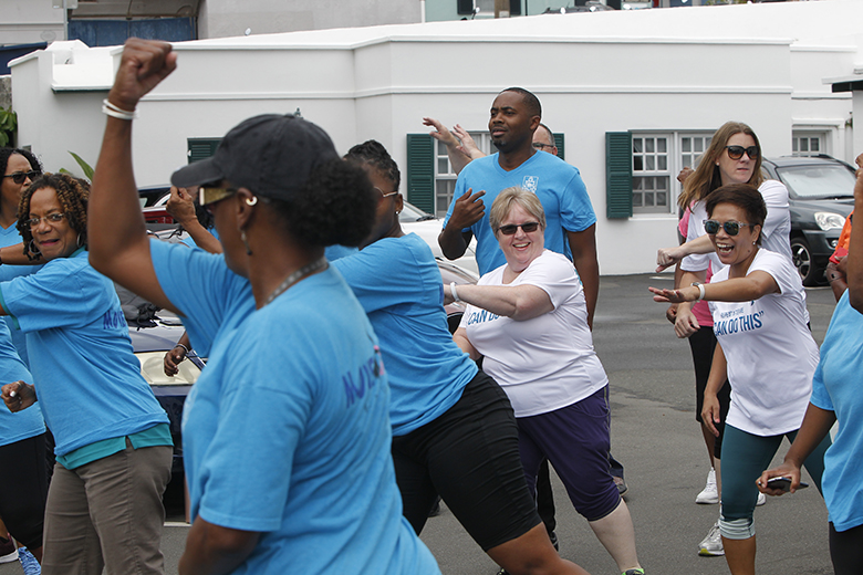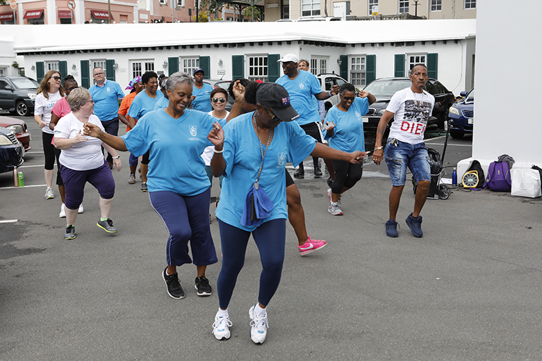 The Department of Health’s Dance Walk around Hamilton included a meeting of the minds with the Premier David Burt and the Minister of Health Kim Wilson, who joined in for an energetic dance during the group’s visit to the Cabinet Office today.