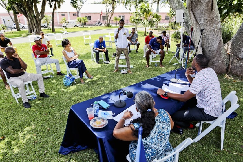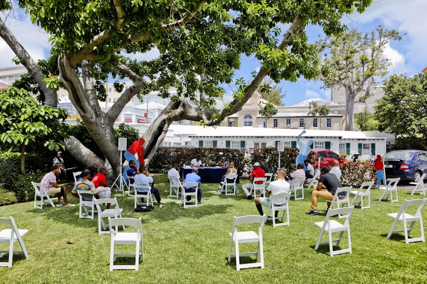 Last week, Premier the Hon. David Burt, JP, MP, and the Minister of Community Affairs and Sports, the Hon. Lovitta Foggo, JP, MP, hosted a Chat and Chew for leaders of Bermuda’s community clubs on the lawn of the Cabinet Office. This was the first Chat & Chew hosted by the Premier since the onset of COVID-19.