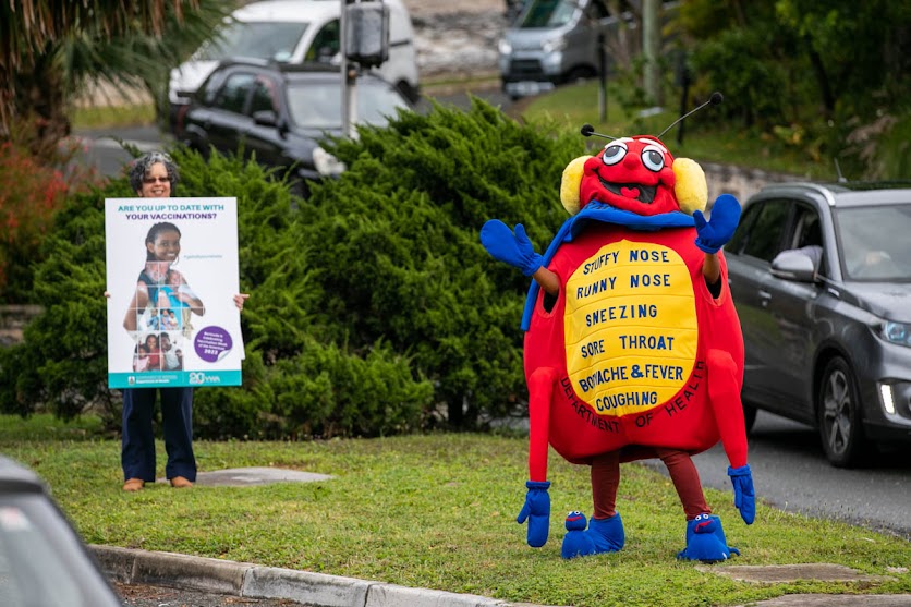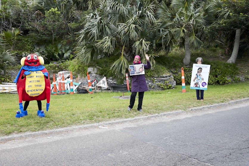 There were several activities to celebrate Vaccination Week in the Americas 2022. The Child Health Mascot Bermy Germy and Department of Health staff were on East Broadway Monday morning and North Shore Road Tuesday morning. Department of Health Staff and the Minister of Health also took part in the Bermy Germy’s dance walk about town on Wednesday, March 27th. Please see the photos and a short video of these events below.