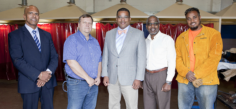 The Minister of Education and Workforce Development, the Hon. Diallo Rabain, JP, MP recently visited the Bermuda College where welders were taking their practical test for National Certification. Welders, electricians, automotive service technicians and landscapers are required to be Nationally Certified; this applies to both Bermudians and non-Bermudians. The practical testing was led by David Lundberg of the Canadian Welding Bureau and Jibreel Talbot, Chairman of the National Training Board Welder Occupational Advisory Committee and owner of Perfect Pass Welding and Diving Services.