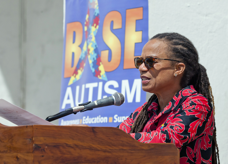 From the steps of City Hall, Minister of Health, the Hon. Kim N. Wilson JP MP delivered a proclamation recognizing the fine work done by Bermuda Autism Support and Education (BASE) and acknowledging World Autism Awareness Day, as observed by the United Nations for the last ten years.